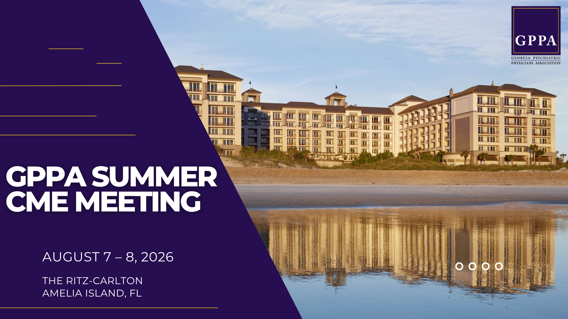 The Georgia Psychiatric Physicians Association is a district branch of The American Psychiatric Association. We are the only statewide organization representing Georgia psychiatrists and their patients. Our members are dedicated to promoting professional values and ethics in the practice of psychiatry; improving patient access to quality mental health care; lifelong learning and professional development; and supporting education and advocacy for our profession, our patients and their families._____________________________________________________________________________________________________ Save the date for our upcoming CME Meetings!