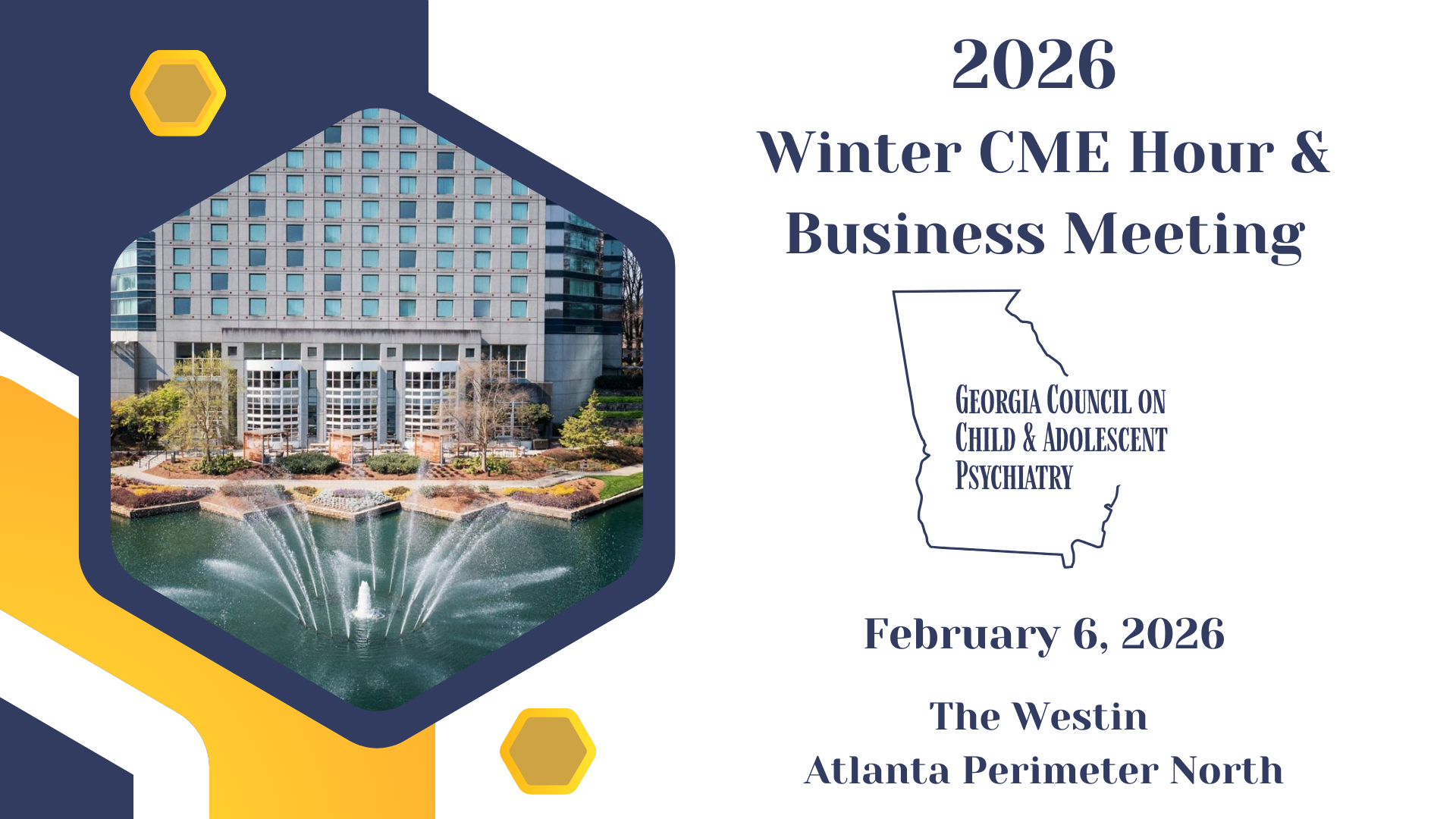 ![]() Join GCCAP for the Winter 2026 CME Hour & Business Meeting, featuring speaker Dr. John Constantino Surveillance & Fulfillment of State and Federal Mental Health Parity Law John Constantino, MD Chief, Behavioral and Mental Health Children's Healthcare of Atlanta